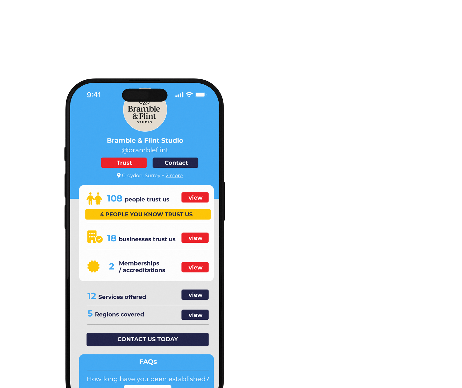 My Trust List gives membership groups, trade bodies, and local networks a platform to show real credibility.